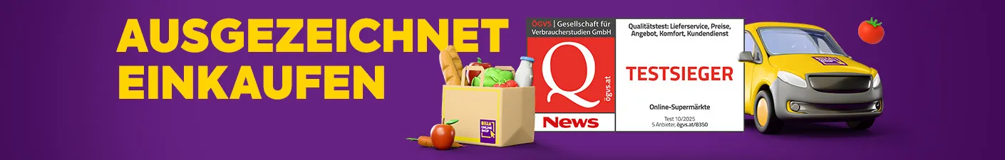 Gratis Lieferung: Gültig von 6.10.2025 bis 30.11.2025. Mindestbestellwert 39 €. Nicht kombinierbar mit anderen Aktionen. Nicht in bar ablösbar. Nur gültig im BILLA Online Shop. Es gelten die AGB der BILLA AG, abrufbar unter www.billa.at.