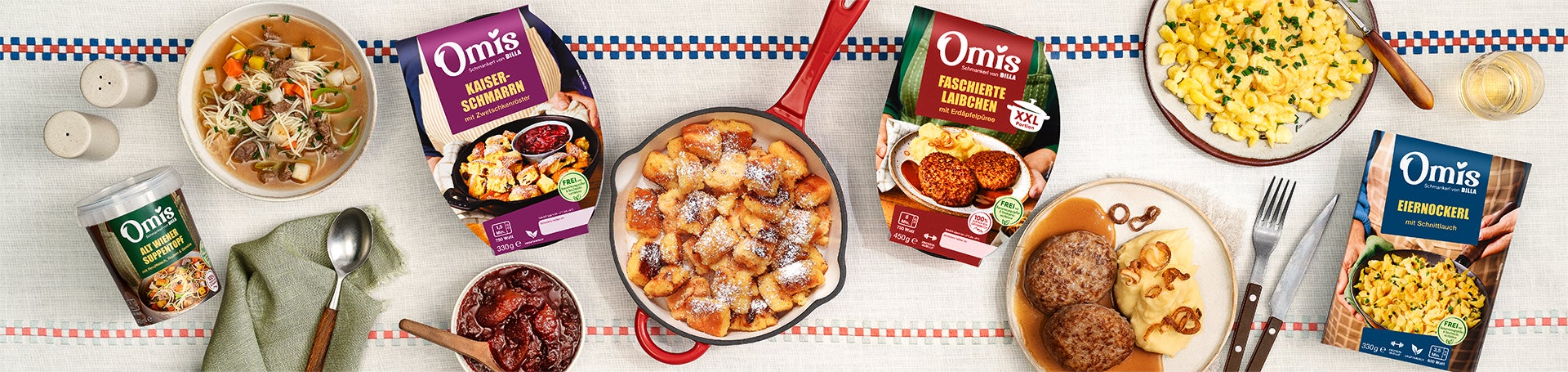 Hol dir den Geschmack von Geborgenheit direkt nach Hause – mit rund 50 liebevoll zubereiteten Gerichten von Omis Schmankerl von BILLA. Ob Krautfleckerl, Kaiserschmarrn oder Alt Wiener Suppentopf: Jedes Gericht bringt den vertrauten Duft aus Omis Küche auf deinen Teller.