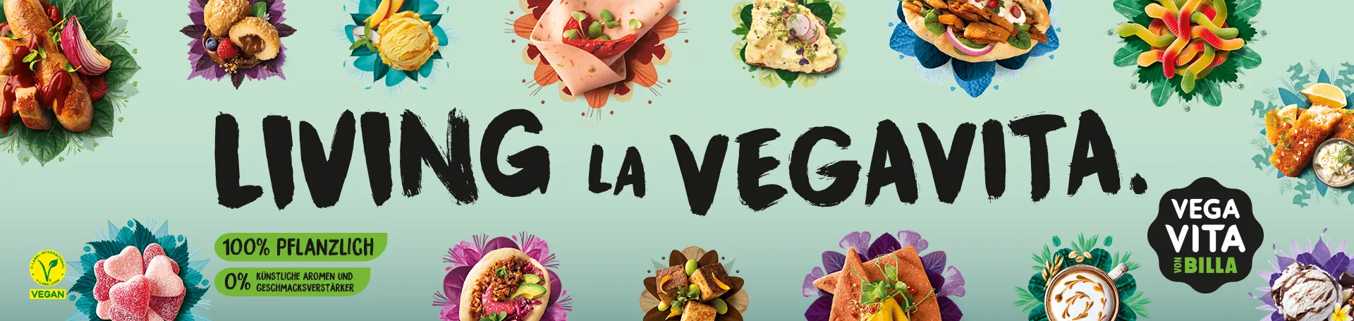 Vegavita ist die rein pflanzliche Eigenmarke von BILLA und steht für einen Lifestyle, der Geschmack und Genuss mit einer pflanzenbasierten Ernährung kombiniert. Schmeckt nicht nur, sondern ist gut für Mensch sowie Klima und dabei super abwechslungsreich. Das zeigt auch die vielfältige Produktpalette.