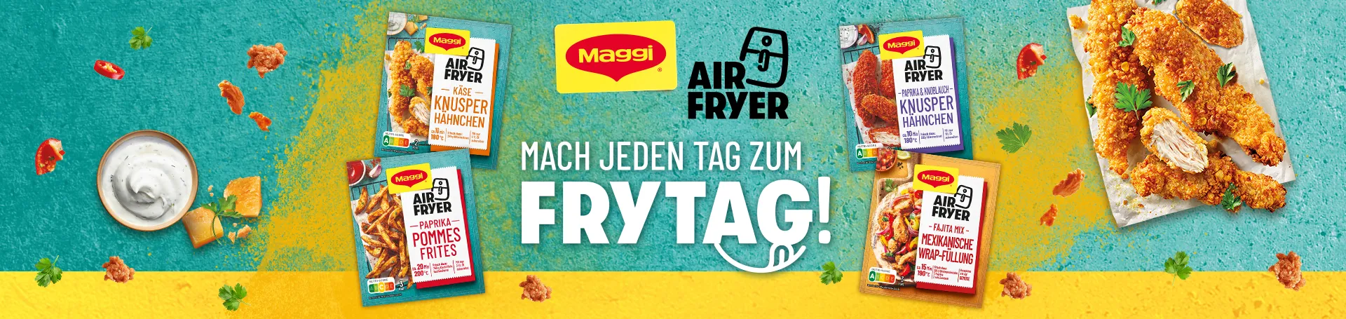 Entdecke die Vielseitigkeit der Heißluftfritteuse und zaubere köstliche Gerichte mit den Produkten von Maggi