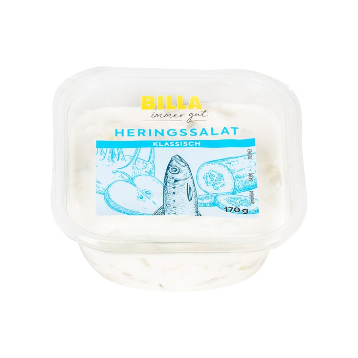 Zutaten: 42% Heringshappen mariniert (HERINGSFILET, Zucker, Speisesalz, Säuerungsmittel: Essigsäure), Wasser, Rapsöl, SAUERRAHM 15% Fett, 5% Äpfel, Zwiebel, 3% Essiggurken (Gurken, Speisesalz, Säuerungsmittel: Essigsäure; Konservierungsstoff: Natriumbenzoat; Süßungsmittel: Saccharin; natürliches Gewürz-Aroma), 3% Kohlrabi, Zucker, MAGERJOGHURTPULVER, Weingeistessig, Speisesalz, EIGELBPULVER, Zitronensaftkonzentrat, SENFKORN, Dextrose, Gewürze, Konservierungsstoff: Kaliumsorbat; Säuerungsmittel: Milchsäure, Citronensäure; Säureregulatoren: Natriumacetate, Natriumcarbonate, Essigsäure; Verdickungsmittel: Xanthan, Johannisbrotkernmehl, Guarkernmehl; Antioxidationsmittel: Ascorbinsäure; Süßungsmittel: Saccharin.