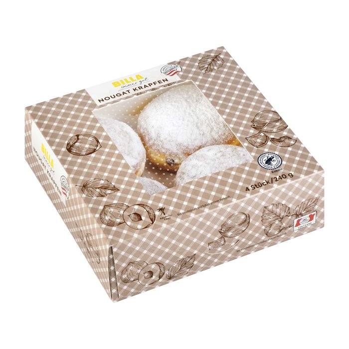 Zutaten: WEIZENMEHL, Nougatcreme 27% (Zucker, Rapsöl, HASELNÜSSE 2,7%*, fettarmes Kakaopulver** 2%*, MILCHPULVER, Stärke, Emulgator: Lecithin; Aroma), Wasser, Rapsöl, Dextrose, Sonnenblumenöl, EIDOTTERPULVER, Hefe, Zucker, HÜHNEREIWEIßPULVER, SÜßMOLKENPULVER, Speisesalz, WEIZENSTÄRKE, Salfett, Rapsöl ganz gehärtet, WEIZENMALZMEHL, Emulgator: Mono- und Diglyceride von Speisefettsäuren, Lecithin (Sonnenblumen); Aroma.