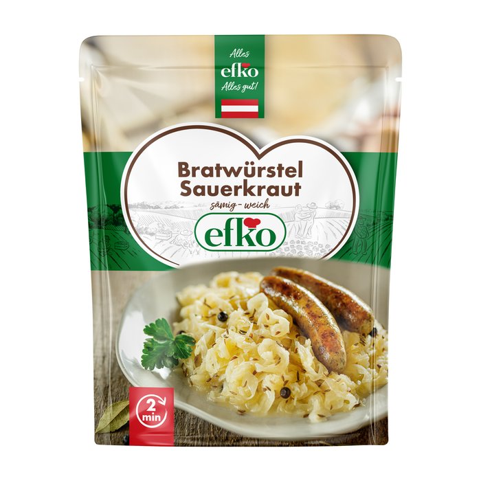 Zutaten: Sauerkraut (Weißkraut, Speisesalz, Gewürze), Zwiebeln, Wasser, Schweineschmalz, modifizierte Stärke, Zucker, Speisesalz, Kümmel, Dextrose, Speisewürze, Stärke, Säuerungsmittel: Citronensäure, Antioxidationsmittel: Ascorbinsäure, Gewürze.