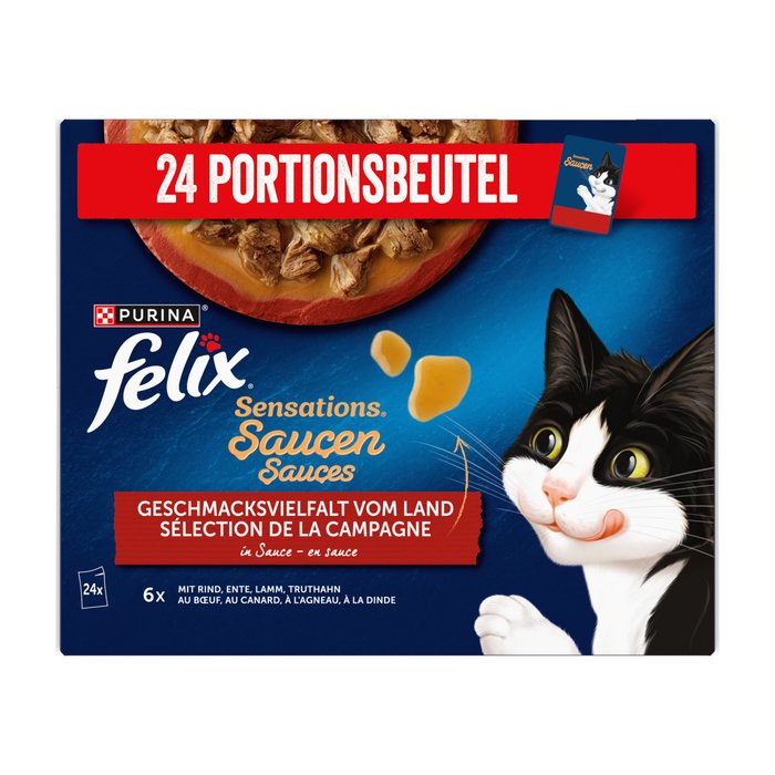 Zusammensetzung: with beef in a jelly with tomato:Fleisch und tierische Nebenerzeugnisse* (14%, davon 4% Rind), pflanzliche Eiweißextrakte, Fisch und Fischnebenerzeugnisse, Gemüse(0,9% dehydrierte Tomate, entspricht 11% Tomate im Gelee), Mineralstoffe, Zucker.*Stückchen: 44% Fleisch und tierische Nebenerzeugnisse. with chicken in a jelly with carrot:Fleisch und tierische Nebenerzeugnisse* (14%, davon 8% Huhn), pflanzliche Eiweißextrakte, Fisch und Fischnebenerzeugnisse,Gemüse (0,7% Karotte, entspricht 8,5% Karotte im Gelee), Mineralstoffe, Zucker.*Stückchens: 44% Fleisch und tierische Nebenerzeugnisse.with duck in a jelly with spinach:Zusammensetzung: Fleisch und tierische Nebenerzeugnisse* (14%, davon 4% Ente), pflanzliche Eiweißextrakte, Fisch undFischnebenerzeugnisse, Mineralstoffe, Zucker, Gemüse (0,3% dehydrierter Spinat, entspricht 4% Spinat im Gelee).*Stückchen: 44% Fleisch und tierische Nebenerzeugnisse.with lamb in a jelly flavoured with game:Fleisch und tierische Nebenerzeugnisse* (14% davon 4% Lamm, 1% Wild), pflanzliche Eiweißextrakte, Fischund Fischnebenerzeugnisse, Mineralstoffe, Zucker.*Stückchen: 44% Fleisch und tierische Nebenerzeugnisse.