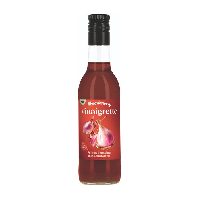 Zutaten: Sonnenblumenöl (50%), Rotweinessig (enthält SULFITE), Schalotten (7%), DIJONSENF (SENFKÖRNER, Branntweinessig, Wasser, Speisesalz), Zucker, Speisesalz, rotes Traubensaftkonzentrat (enthält SULFITE), Zwiebeln.