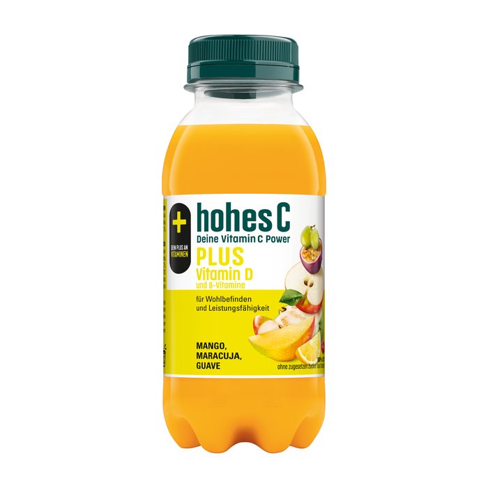 Zutaten: Mehrfruchtsaft aus Fruchtsaftkonzentraten (Apfel, Traube, Zitrone, Acerola, Maracuja 3%), Mangomark 5%, Guavenmark 2%, Pantothensäure, Vitamin A, Vitamin D, Vitamin B12.