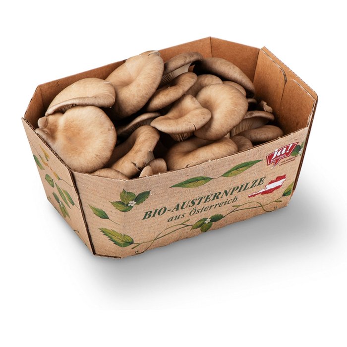 Die Ja! Natürlich Austernpilze werden in der Traube geerntet und sind dadurch länger haltbar. Ihr Geschmack ist mild-nussig, sie eigenen sich perfekt zum Braten, Marinieren und Grillen und sind ein beliebter Fleischersatz. Gemäß EU-Bio-Verordnung ohne Einsatz von chemisch-synthetischen Spritzmitteln und garantiert gentechnikfrei kommen sie ganzjährig aus Österreich.