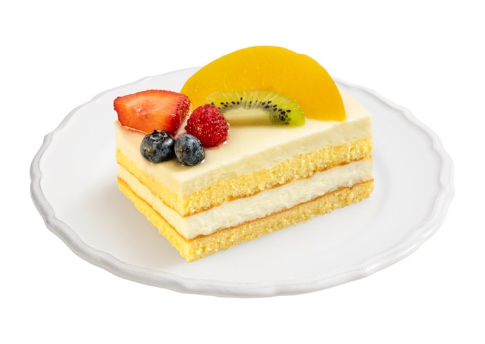 Biskuitteig mit Joghurt-Oberscreme und Früchten belegt
