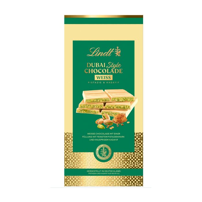 Zutaten: VollMILCHschokolade [Zucker, Kakaobutter, VollMILCHpulver, Kakaomasse*, MILCHzucker, MagerMILCHpulver, Emulgator (SOJAlecithin), GERSTENmalzextrakt, Aroma], PISTAZIEN-Engelshaar-Füllung 26% [PISTAZIEN* (45%), Engelshaar-Teigfäden* (15%) (WEIZENmehl, Wasser, Maisstärke, Sonnenblumenöl, Salz), Zucker, BUTTERreinfett, Kakaobutter, VollMILCHpulver, MANDELN, MagerMILCHpulver, HASELNÜSSE, Salz, Emulgator (SOJAlecithin), Invertzuckersirup, Aromen].Kann andere SCHALENFRÜCHTE, ERDNÜSSE, SESAMSAMEN und andere GLUTENHALTIGE GETREIDE enthalten. *aus Nicht-EU