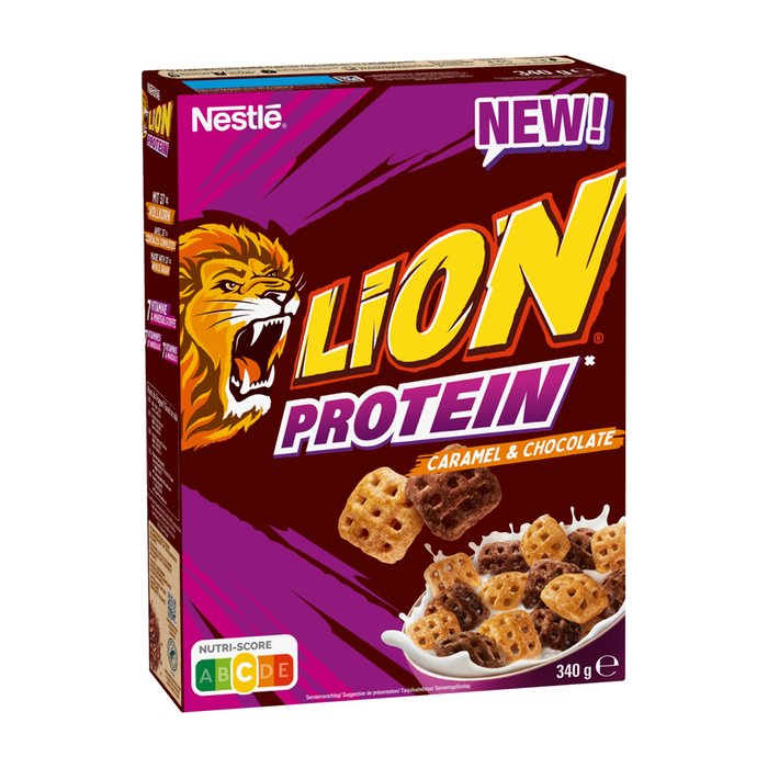 ZUTATEN: 37,5% VOLLKORNWEIZENMEHL, Zucker, Maisgrieß, WEIZENPROTEIN, Glukosesirup, WEIZENMEHL, Sonnenblumenöl, 3,4 % Schokolade (fettarmer Kakao¹, Zucker, Kakaomasse¹), Calciumcarbonat, natürliche Aromen, Salz, Emulgator (Lecithine), Karamellzuckersirup, Antioxidationsmittel (stark tocopherolhaltige Extrakte), Eisen, Niacin, Pantothensäure, Vitamin D, Vitamin B6, Thiamin (Vit. B1), Riboflavin (Vit. B2), Folsäure. Kann MILCH und NÜSSE enthalten. ¹Rainforest Alliance-zertifiziert. Mehr erfahren unter ra.org. Für 100g LION Protein wurden vor dem Backen 37,5 g Vollkorngetreide eingesetzt. Die Prozentangaben zum Vollkornanteil beziehen sich laut Lebensmittelinformationsverordnung auf die Einsatzmenge vor dem Backen und sind bezogen auf das Gesamtprodukt.