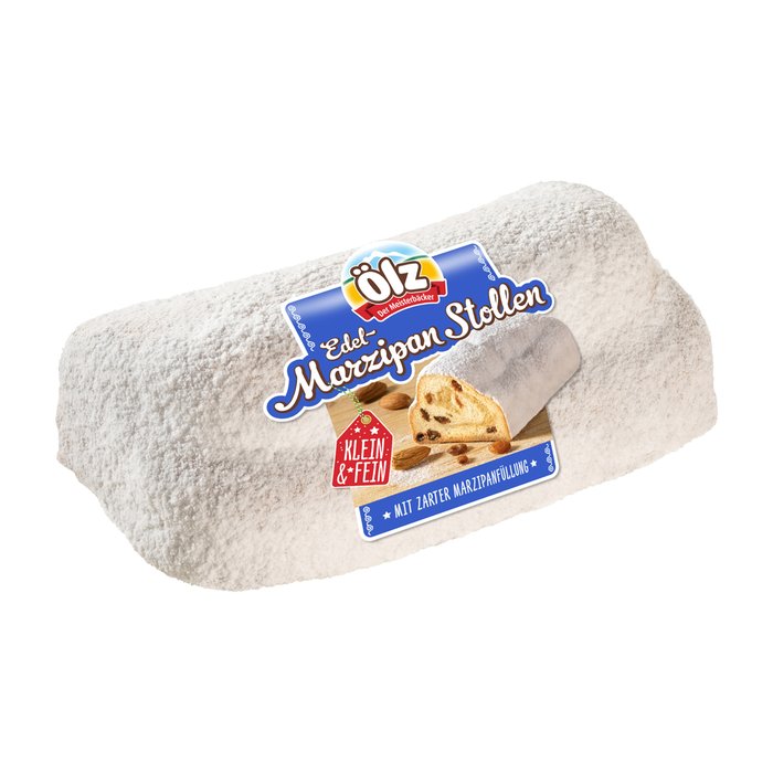 Feines Hefegebäck mit 17% Edelmarzipanfüllung, 12,5% Edelmarzipan.