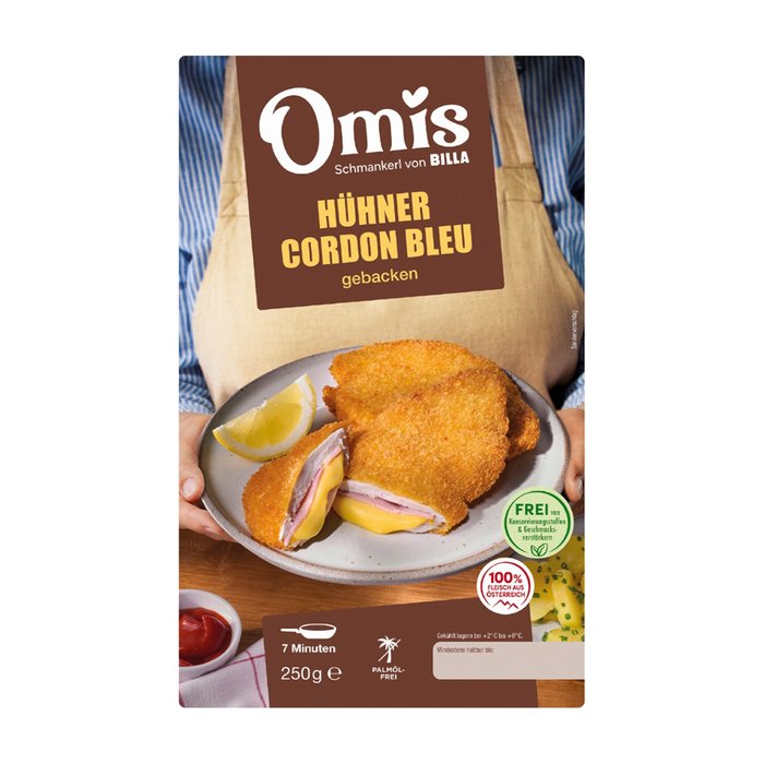 Backrohr 1. Das Cordon Bleu im vorgeheizten Backrohr bei 200°C ca.15 Min. backen, bis die Panade schön knusprig ist. 2. Am Teller anrichten und genießen.