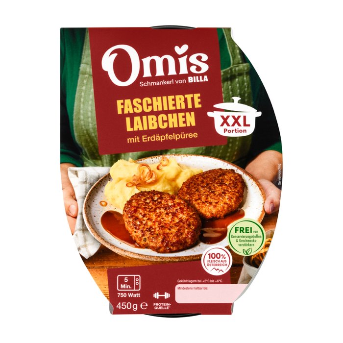 Omis Schmankerl Faschiertes Laibchen mit Püree