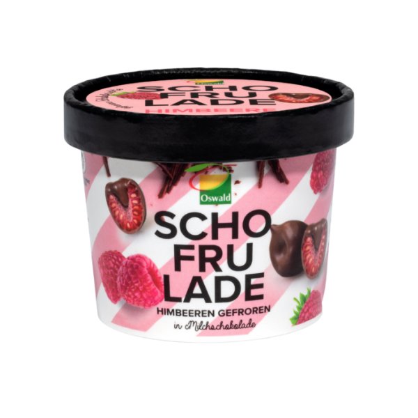 Tiefgefrorene Himbeeren überzogen mit Vollmilchschokolade