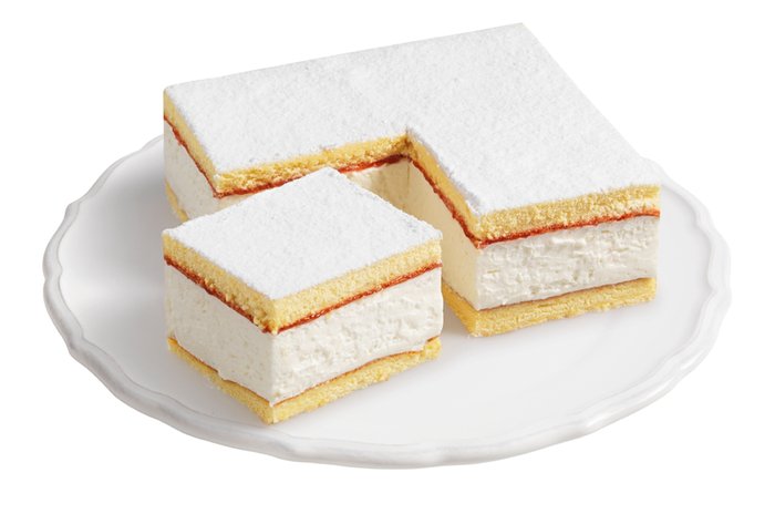 TOPFEN, SCHLAGOBERS, WEIZENMEHL, EIDOTTERPULVER, Emulgator (E472b, E475, E477), HÜHNEREIEIWEISSPULVER, Backtriebmittel (Natrium-Diphosphat, Natrium-Biocarbonat), MAGERMILCHPULVER, Salz, Zitronensaft aus Zitronensaftkonzentrat, Stabilisator (E415, E466), Aromen, Gewürze, Glucose-Fructose-Sirup, Rote Johannisbeere, Stärke, Dextrose, pflanzliches Fett, Trennmittel: Magnesiumsalze der Speisefettsäuren, Geliermittel: Pektin, Citronensäure, Konzentrierter Schwarzer Karottensaft, Konservierungsmittel:Kalium Sorbate, Gelatine, Vanillin, Carrageen.