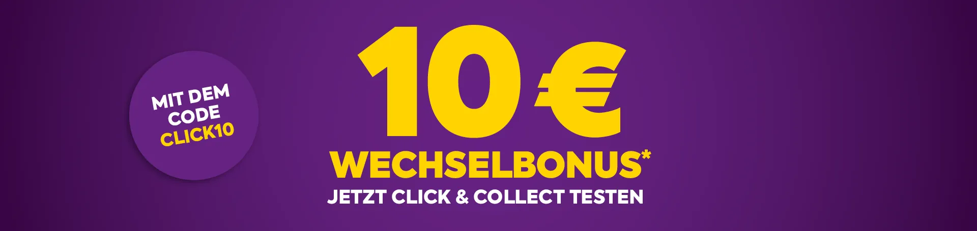 Schon gewusst? Damit Sie sich selbst von Click & Collect überzeugen können, gibt es bis 31.1.2026 mit dem Code CLICK10 einen 10 € Wechselbonus* auf Ihre Bestellung ab 30 € Einkaufswert.